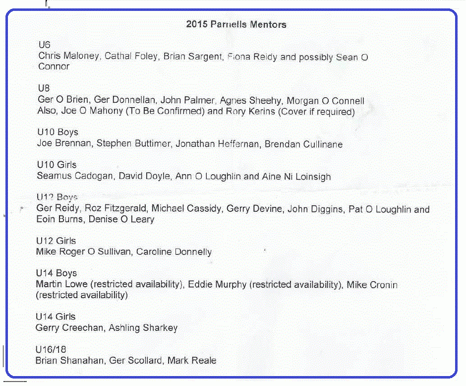 Hurling teams under 16 to Minor.